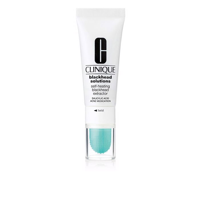 Descubre el BLACKHEAD SOLUTIONS Self-Heating Blackhead Extractor de Clinique, un innovador tratamiento para acné, poros y puntos negros. Diseñado con un eficaz 'efecto calor' que se activa con agua, facilita la extracción de puntos negros al desobstruir poros y eliminar suciedad acumulada, sin dejar marcas ni causar molestias. Apto para todos los tipos de piel, incluyendo desde menos de 18 hasta más de 50 años. Con la primera aplicación notarás una limpieza profunda, y en solo 6 semanas puede eliminar hasta un 93% de los puntos negros, previniendo su reaparición. Su fórmula es hipoalergénica, sin fragancia, no acnegénica y dermatológicamente testada, conteniendo ingredientes como Salicylic Acid 1.0%. Disfruta de una piel suave, uniforme y renovada. Contenido: 20 ml.