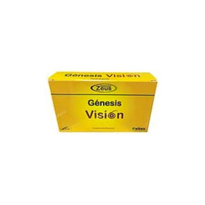 Composicion: GÉNESIS: Aceite de pescado, Gelatina, Humectante (Glicerina), Emulgente (Cera de abeja amarilla), Ácido lipoico en polvo, Coenzima Q10, Vitamina E Natural 67% (D-alfa-tocoferol), Colorante (Beta-caroteno), Vitamina D3 (Colecalciferol, 1000000 IU/g). Por 1 cápsula: Aceite de pescado (Omega-3) 80% DHA 1000mg -Ácido lipoico en polvo 50mg -Coenzima Q10 50mg -Vitamina E (D-alfa-tocoferol) 33,5mg -Vitamina D3 (Colecalciferol) 7,5µg VISIÓN: Acetil L-Taurina, Cápsula vegetal [Agente de recubrimiento (Hidroxipropilmetilcelulosa)], L-Carnosina, Ácido R-alfa Lipoico, Extracto seco de Tagetes (Tagetes erecta L., 20% Luteína), Maltodextrina, Sulfato de zinc, Gluconato de manganeso), Agente de carga (Celulosa microcristalina), Antiaglomerante (Dióxido de silicio), Alga Haematococcus (Haematococcus pluvialis Flotow, 5% Astaxantina), Colorante (Dióxido de titanio), Selenito de sodio. Por 1 cápsula: Acetil-L-Taurina 200mg - L-Carnosina 100mg - Ácido R-alfa-lipoico 100mg - Extracto seco de Tagetes (Tagetes erecta L., 20% Luteína) 50mg (10mg Luteína) - Zinc 15mg - Alga Haematococcus pluvialis (5% Astaxantina) 10mg (0,5mg Astaxantina) - Manganeso 3mg - Selenio 82,5µg