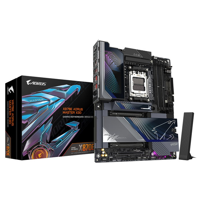 GIGABYTE X870E AORUS MASTER X3D Placa Base - Compatible con procesadores AMD Ryzen 9000, VRM digital de 18+2+2 fases, hasta 9000MHz DDR5 (O.C.), 2xPCIe 5.0 + 3xPCIe 4.0, Wi-Fi 7, LAN 10GbE, USB 4, AMD, Zócalo AM5, AMD Ryzen 7000 Series, AMD Ryzen 8000 Series, AMD Ryzen 9000 Series, Zócalo AM5, DDR5-SDRAM, 256 GB