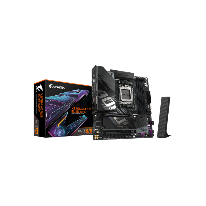 GIGABYTE X870M AORUS ELITE WIFI7 Placa Base – Compatible con procesadores AMD Ryzen 9000, VRM digital de 14+2+2 fases, hasta 8200 MHz DDR5 (OC), 1 x PCIe 5.0 + 1 x PCIe 4.0, Wi-Fi 7, LAN 2.5 GbE, USB 4, AMD, Zócalo AM5, AMD Ryzen 7000 Series, AMD Ryzen 8000 Series, AMD Ryzen 9000 Series, Zócalo AM5, DDR5-SDRAM, 256 GB