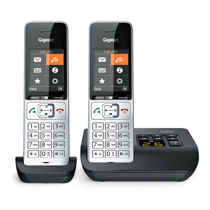 Gigaset COMFORT 500A duo Teléfono DECT/analógico con contestador automático, manos libres e identificador de llamadas, Negro/Plata
