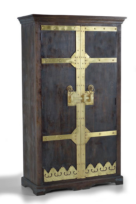 GINER Y COLOMER Armario Madera Mango con Detalles Bronce Nogal Oscuro 190x110x50 cm