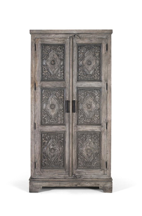 GINER Y COLOMER Armario Madera Mango Maciza Gris con Barra Colgador y 4 Baldas