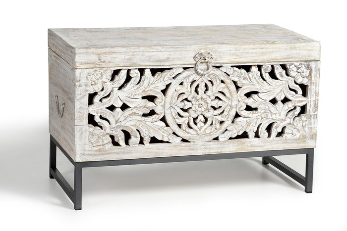 Giner y Colomer Baúl de Madera de Mango con Patas Metálicas Blanco Envejecido