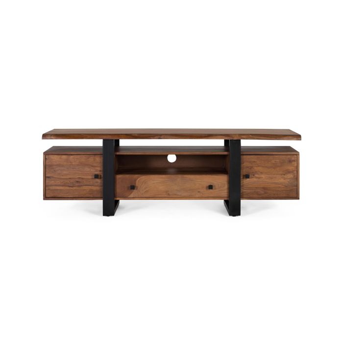 Mueble de televisión GINER Y COLOMER fabricado en madera de palisandro recuperada, destacando por su autenticidad y carácter natural. Cada pieza conserva sus vetas, nudos y tonalidades únicas, dándole un aspecto artesanal y exclusivo. Ideal para quienes valoran la autenticidad y el diseño sostenible.