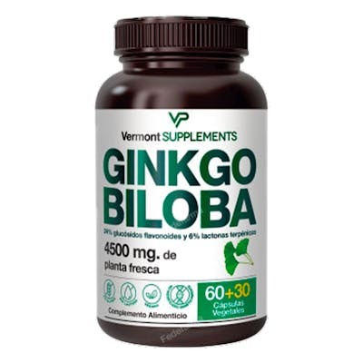 VERMONT SUPPLEMENTS Ginkgo Biloba 60+30 Cápsulas Vegetales - Contribuye a la Normal Circulación Periférica