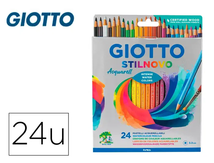 Lápices para acuarelar. Permiten lograr efectos artísticos. Colores intensos y brillantes. Mina acuarelable de calidad superior con cuerpo del mismo color. Caja de cartón. Altura del lápiz: 178 mm. Diámetro del lápiz: 7 mm. Diámetro de la mina: 3,3 mm.