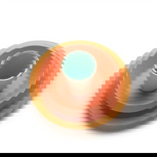 Set de vajilla para niños "Giro Kids" diseñado por Ben van Berkel / UNStudio y frabricado en melamina. Giro Kids es un servicio de mesa esencial a la vez que completo para las comidas de los peques: plato llano, plato hondo, vaso y cubiertos. Un servicio de mesa completo dedicado a la comida de los más pequeños, que incluye: plato llano, plato hondo y vaso. Diseñados en función de las necesidades de los más pequeños, para ese aprendizaje fundamental para desarrollar su independencia y autonomía, relacionándose con los demás en la mesa como si fuera un juego. Los colores de los distintos elementos del conjunto dejan espacio a los gustos y a la fantasía de los peques.