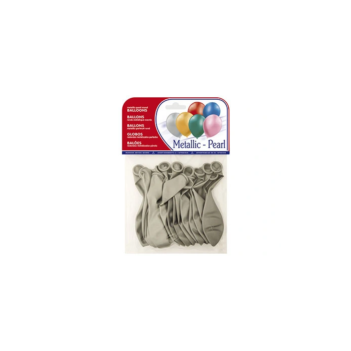 Blanca Globo 100% Latex Biodegradable Metalizado Plata Bolsa de 15 Unidades