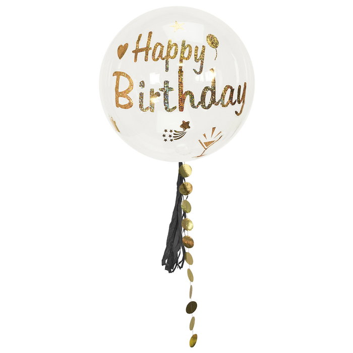 - ¡Decora con este gran globo con tira colgante y la frase Happy Birthday!