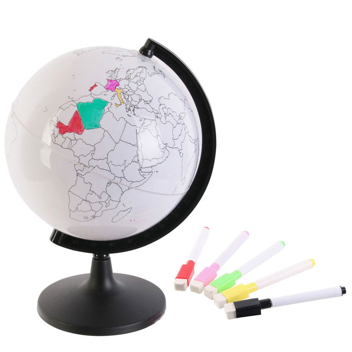 - ¡Descubre países y continentes con diversión gracias a este globo giratorio personalizable! Rotuladores incluidos.