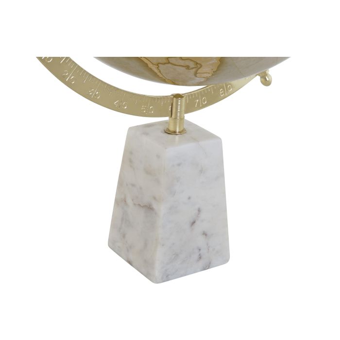 DKD Home Decor Globo Terráqueo Vintage de Escritorio Blanco Dorado con Base de Mármol y Globo de PVC, 25 x 40 x 25 cm