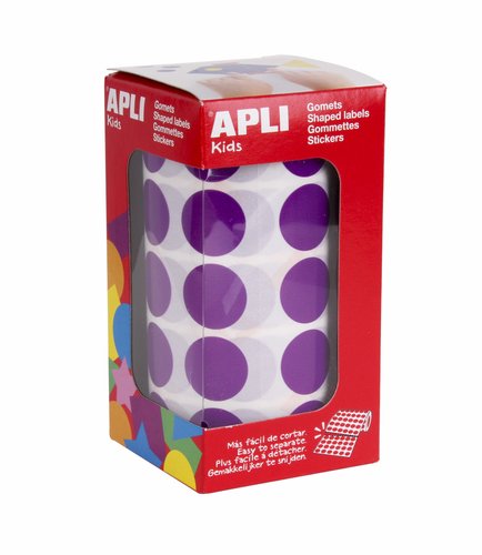 Gomets con adhesivo permanente presentados en estuche, Cada estuche contiene 59 hojas separadas entre sí por una línea de trepados que permite separar las hojas fácilmente, convirtiéndolo en un formato muy adecuado para escuelas o colectivos donde se trabaje con niños.