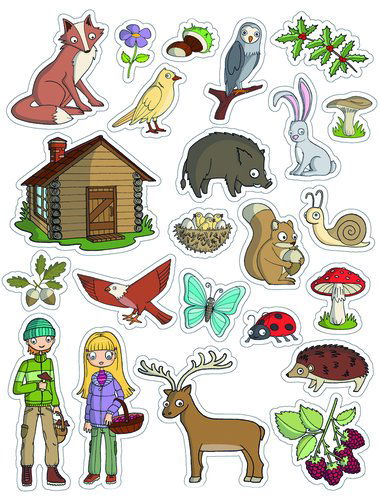 Bolsa de Gomets temáticos con adhesivo removible para ayudar a los más pequeños a identificar objetos, al mismo tiempo que aprenden nuevo vocabulario o desarrollan sus habilidades motoras.