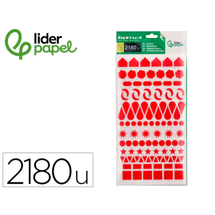 Liderpapel Gomets Figuras Geométricas Surtidas, 20 Hojas con Círculos, Triángulos, Estrellas y Cuadrados en Colores Varios