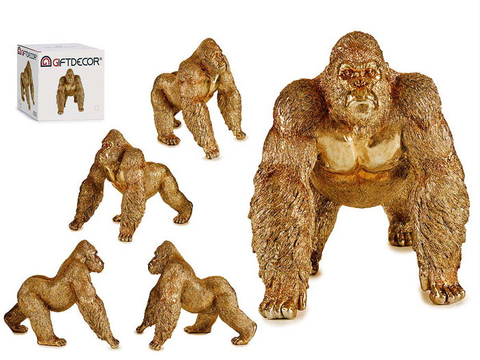 Giftdecor Gorila Andando Dorado Mediano Resina Decorativo 20 cm x 34 cm x 27.5 cm (Set de 2)