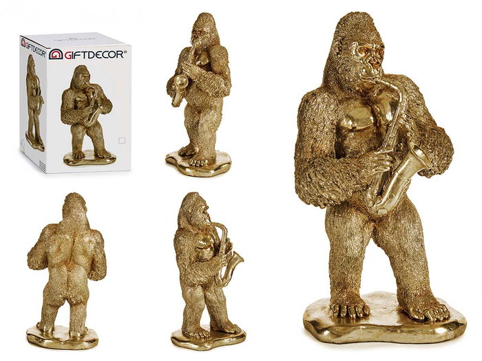 Giftdecor Gorila Saxo Dorado Resina 18.5 x 38.8 x 22 cm (Set de 3)