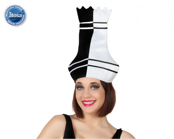 Gorro Ficha Ajedrez Rey Blanco Negro Accesorio Temática Personajes de Cuento Disfraz Divertido Adulto Polyester