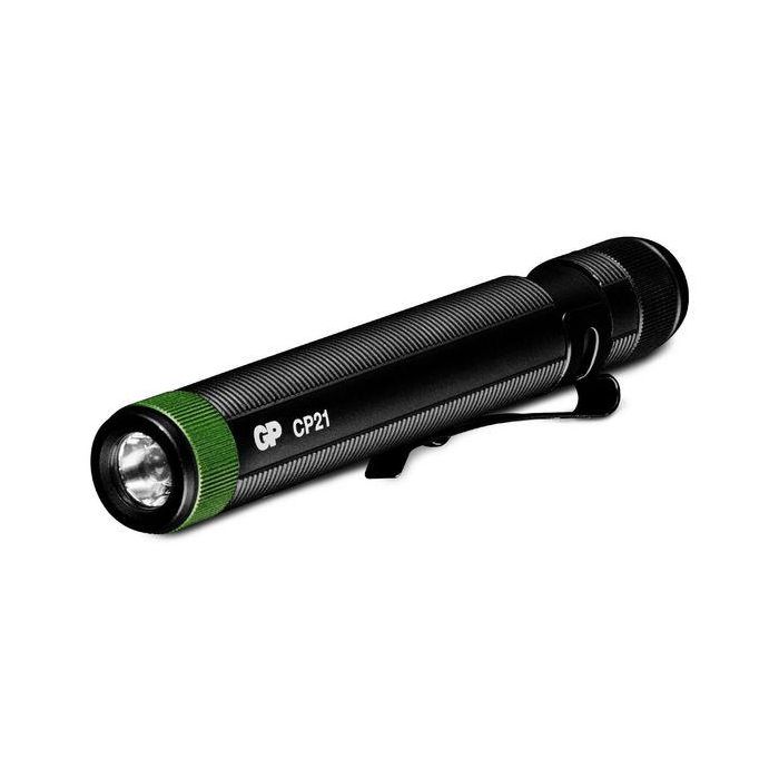 GP CP21 Linterna de Bolsillo 20 Lúmenes, Aluminio, IPX4, Compacta 50g con Clip para Zonas Estrechas, 25m Alcance, Pilas AAA