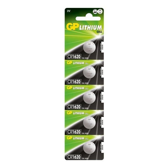 GP Pila Litio CR1620, Batería Botón Lithium 3V, Blíster 5 Unidades
