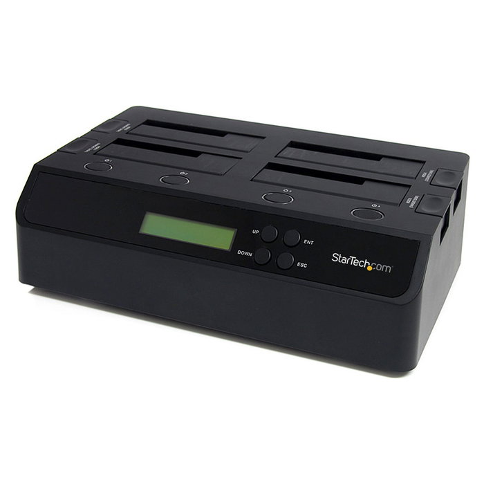 StarTech.com Clonador Borrador Autónomo USB 3.0 / eSATA a SATA de 4 Bahías para Discos Duros y SSDs 1:3 - Docking Station - Sanitizador, Duplicador de HDD (discos duros), 3 copias, USB/eSATA, Negro, Plástico, USB Tipo B
