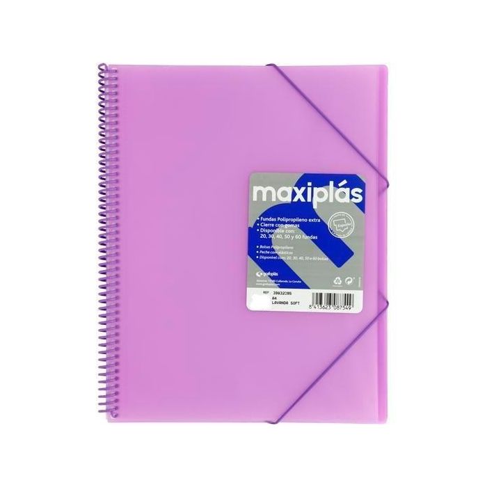 Grafoplás Carpeta Con Fundas Maxiplás Espiral A4 30 Fundas C-Sobre Pp Rígido Translúcido Lavanda Soft