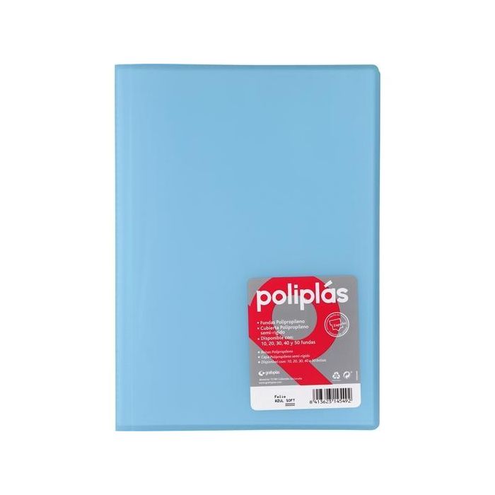 Grafoplás Carpeta con Fundas Poliplás Soldadas Folio 10 Fundas PP Semirrígido Translúcido Azul Soft