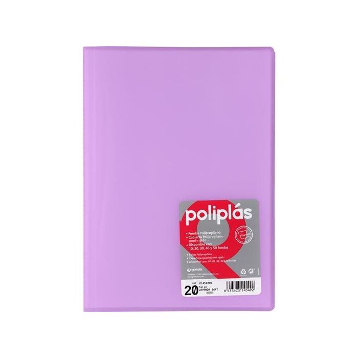 Grafoplás Carpeta con Fundas Folio 20 Fundas Poliplás Soldadas PP Semirrígido Translúcido Lavanda Soft