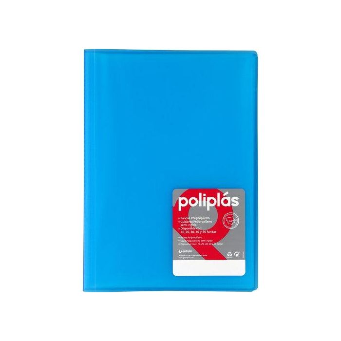 Grafoplás Carpeta Poliplás de Polipropileno Translúcido con 30 Fundas Soldadas Folio Azul