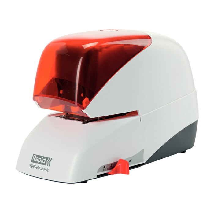Rapid Grapadora Eléctrica 5050e, Capacidad 50 Hojas, Usa Cassette Grapas, Plata/Naranja
