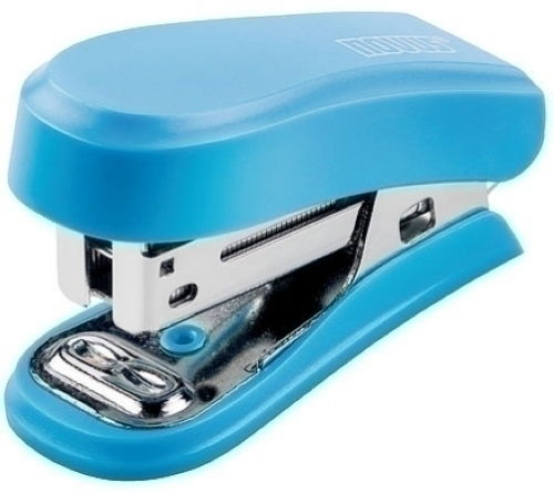 Mini grapadora compacta para uso escolar y de bolsillo con: estructura metálica, cubierta de plástico de color, extraegrapas metálico integrado, profundidad de entrada de papel hasta 20 mm, cargador de apertura superior, capacidad para 40 grapas 24/6. Una grapadora para grapado cerrado y clavado, con capacidad de grapado de hasta 12 hojas de 80gr/m². Apta para grapas 24/6 o 26/6. Incluye una caja de 320 grapas.