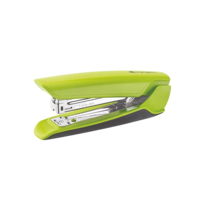Mecanismo de carga rápida. Extraegrapas incorporado con soporte de grapas. Yunque giratorio e indicador de recarga.Uso de grapas: 24/6 – 26/6. Capacidad de carga: 100 grapas (24/6), 150 grapas (26/6).Capacidad de grapado: 30 hojas. Colores surtidos.