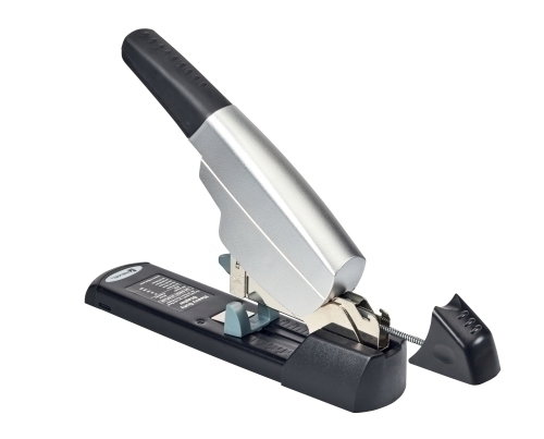 Grapadora metálica de alta resistencia para grapar hasta 200 hojas de papel de 80 g/m². Cuenta con una profundidad de entrada de papel ajustable de hasta 65 mm para un grapado flexible. Carga de grapas rápida y fácil con el mecanismo de carga frontal. Diseñada para el grapado permanente de documentos de gran tamaño. Compatible con las grapas Rexel No.23/8.