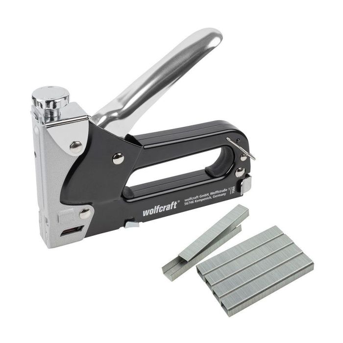 Wolfcraft Tacocraft 7 Grapadora Profesional Doméstica Metálica para Grapas 4-14 mm Incluye 1000 Grapas 8 mm