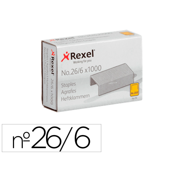 Rexel Grapas 26/6 mm Galvanizada Caja 1000 Unidades para Grapadora de Sobremesa, Oficina y Hogar, 20 Hojas