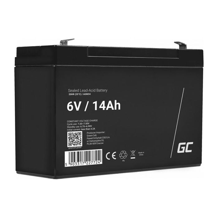 Green Cell AGM34 Batería Sellada de Plomo-Ácido (VRLA) 6V 14Ah