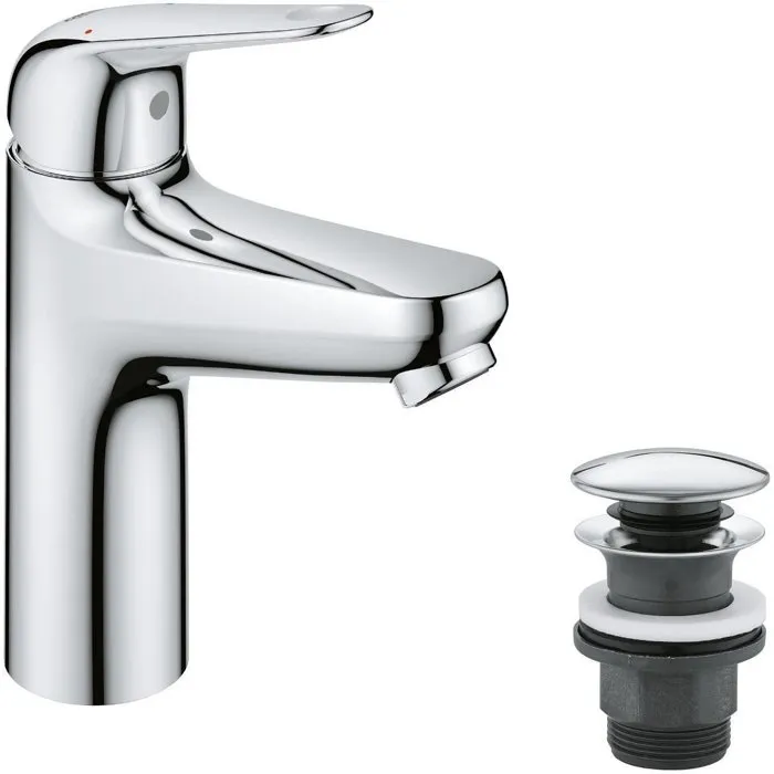 Mezclador monomando de lavabo - GROHE Swift - 24326001 - Cromo - Talla M - Ahorro de agua - Desagüe click-clack