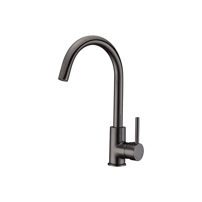 Mezclador de fregadero - Estilo moderno - Mecanismo: cartucho cerámico Ø 35 mm - Ahorro de agua: flujo reductor del aireador - Mango: metal - Cuerpo: latón - Caño: tubo móvil - Recubrimiento: color del cañón del rifle PVD - Base: Ø 48 mm - Mangueras de conexión de acero inoxidable F 3/8 - Tuerca de apriete rápido a mano - Garantía de 2 años