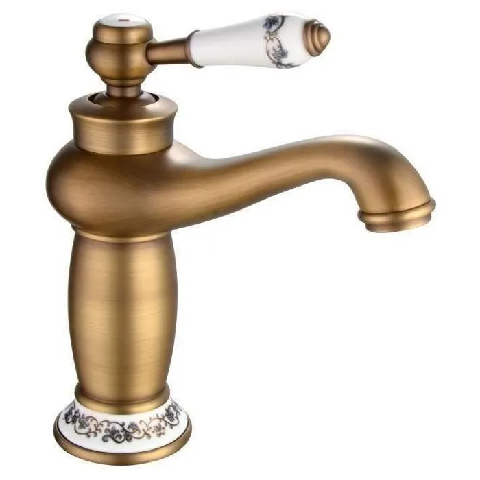 ROUSSEAU Mezclador de lavabo MARPLE viejo bronceado con cartucho cerámico y aireador ahorro de agua