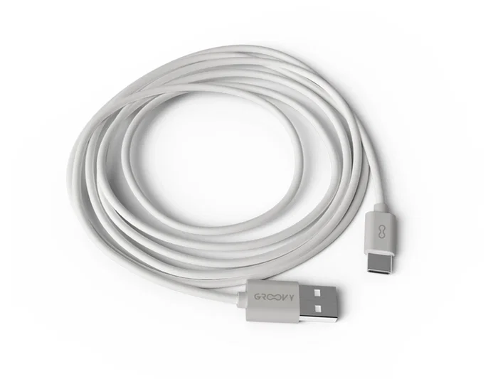 Groovy Cable USB-A a USB-C 2 metros Blanco - Carga y Sincronización para Dispositivos Android, Cámaras, Maquinillas y Libros Digitales