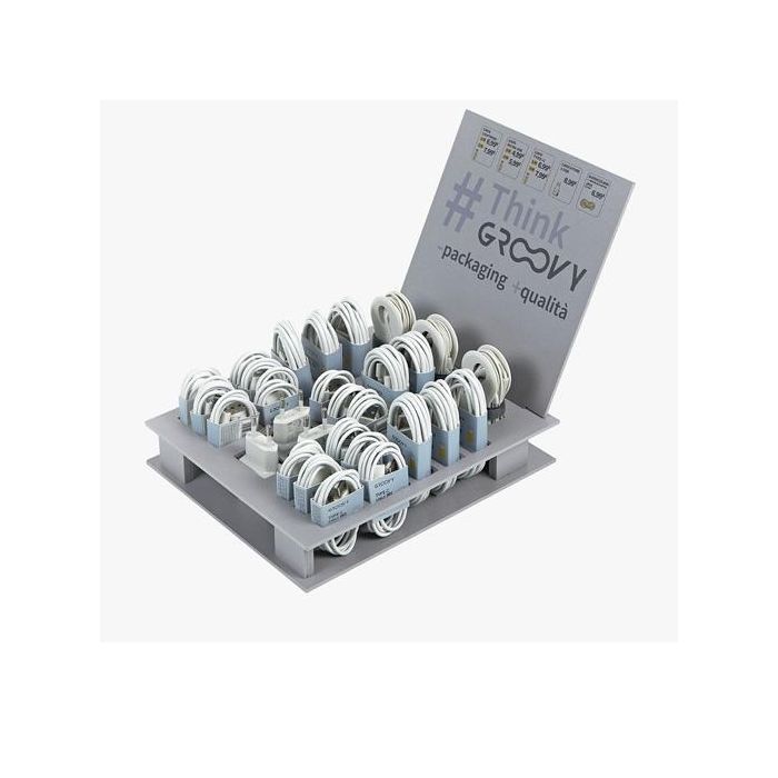 Groovy Expositor De Cables, Auriculares Y Cargadores -29U- Contiene: Cables Lightning, Micro USB, Type-C, Cargadores 2 USB, Auriculares Mini Jack