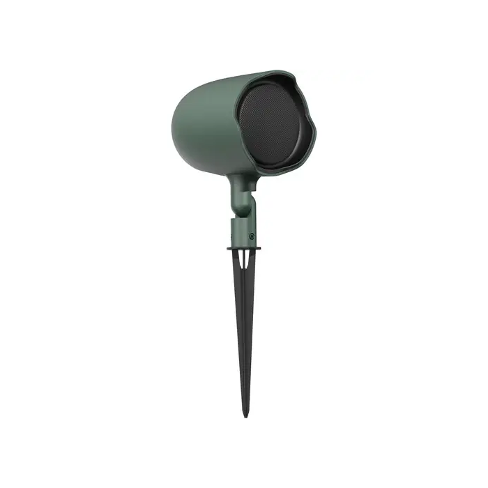 Altavoz de Paisaje con Estaca de Tierra El compact, resistente a la intemperie JBL GSF3 altavoz de paisaje proporciona una fidelidad superior y una amplia cobertura en una variedad de aplicaciones comerciales al aire libre, con un sistema de controlador coaxial personalizado de dos vías y 3 pulgadas que ofrece un sonido de rango completo y cristalino. (Extienda la respuesta de bajos del sistema con los subwoofers enterrados JBL GSB8 o GSB12.) Este versátil altavoz cuenta con un transformador multi-tap de 15 vatios para su uso en sistemas distribuidos de 70V/100V, y es conmutable para operación directa de 8 ohmios.Características? Transductores: woofer de 83 mm (3?) con cono de polipropileno y bobina móvil de 25 mm (1?) sobre formador de bobina móvil Kapton, Tweeter de cúpula de titanio de 20 mm (0,8 pulgadas) con conjunto de imán de neodimio y formador de bobina móvil Kapton.? Rango de frecuencia: 74 Hz ? 20 kHz? Manejo de energía (con configuración de 8 ?): 30 W de ruido rosa continuo, 60 W de programa continuo? Clasificación IP66 contra la entrada de agua y polvo.? El transformador de 15 W con tomas múltiples se puede conmutar para operación directa de 8 ? o uso en sistemas distribuidos de 70 V/100 V.? El orificio de goteo inferior proporciona drenaje para los conductores.? Combina bien con los subwoofers paisajísticos empotrados JBL GSB8 y GSB12? Dirigido mediante bisagra ajustable? Incluye estaca de tierra y soporte en L para montaje en superficie? Incluye selector de grifo ubicado en la parte inferior del altavoz, lejos de la incursión de agua.? Disponible en acabado verde cazador o tostado