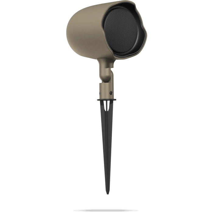 Altavoz de Paisaje con Estaca de Tierra El compact, resistente a la intemperie JBL GSF3 altavoz de paisaje proporciona una fidelidad superior y una amplia cobertura en una variedad de aplicaciones comerciales al aire libre, con un sistema de controlador coaxial personalizado de dos vías y 3 pulgadas que ofrece un sonido de rango completo y cristalino. (Extienda la respuesta de bajos del sistema con los subwoofers enterrados JBL GSB8 o GSB12.) Este versátil altavoz cuenta con un transformador multi-tap de 15 vatios para su uso en sistemas distribuidos de 70V/100V, y es conmutable para operación directa de 8 ohmios.Características? Transductores: woofer de 83 mm (3?) con cono de polipropileno y bobina móvil de 25 mm (1?) sobre formador de bobina móvil Kapton, Tweeter de cúpula de titanio de 20 mm (0,8 pulgadas) con conjunto de imán de neodimio y formador de bobina móvil Kapton.? Rango de frecuencia: 74 Hz ? 20 kHz? Manejo de energía (con configuración de 8 ?): 30 W de ruido rosa continuo, 60 W de programa continuo? Clasificación IP66 contra la entrada de agua y polvo.? El transformador de 15 W con tomas múltiples se puede conmutar para operación directa de 8 ? o uso en sistemas distribuidos de 70 V/100 V.? El orificio de goteo inferior proporciona drenaje para los conductores.? Combina bien con los subwoofers paisajísticos empotrados JBL GSB8 y GSB12? Dirigido mediante bisagra ajustable? Incluye estaca de tierra y soporte en L para montaje en superficie? Incluye selector de grifo ubicado en la parte inferior del altavoz, lejos de la incursión de agua.? Disponible en acabado verde cazador o tostado