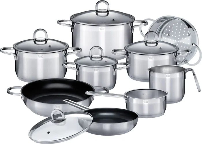 GSW Alara Juego de Utensilios de Cocina de Acero Inoxidable de 14 Piezas para Todas las Placas, Incluida Inducción
