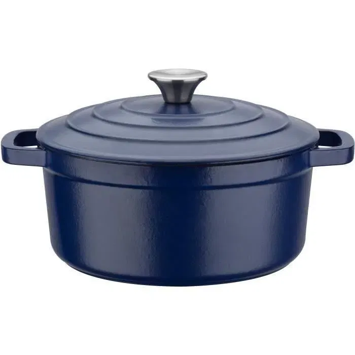 Blue Magic - Olla - Ø 20 cm - Hierro fundido - Azul - Económica: hierro fundido macizo de alta calidad - Óptima distribución y conservación del calor - Fondo esmaltado en blanco, fácil mantenimiento - Apto para horno a 240°C - Tapa con puntos armonizadores temperatura de cocción - Todas las fuentes de calor, incluida la inducción.