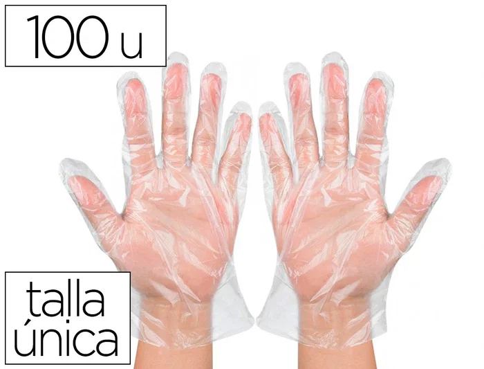 Guante de plástico higiénico desechable de un solo uso. Talla única. Caja de 100 unidades.