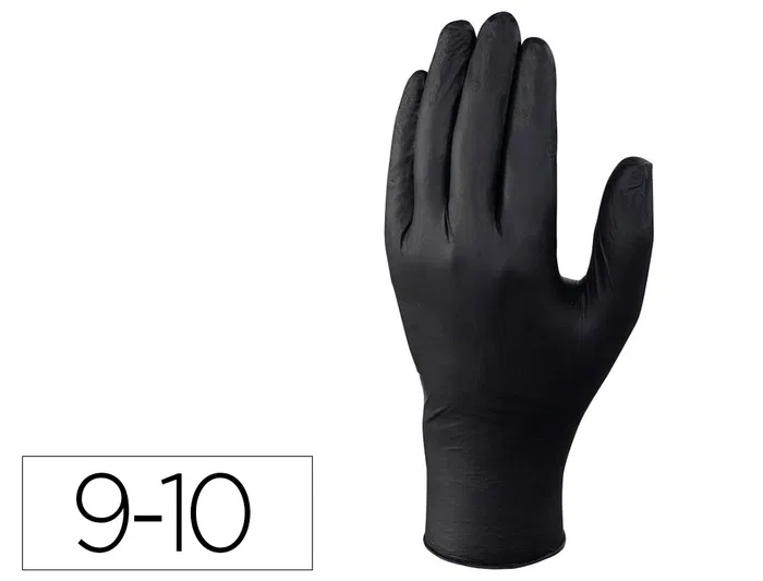 Deltaplus Guantes de Nitrilo Desechable Negro Caja 100 Unidades Talla 9-10