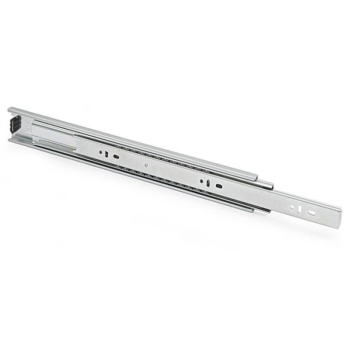 Guías de bolas, con una altura de 45 mm y extracción total. Es una guía desmontable de acero que tiene una cpacidad de carga de 45 kg.