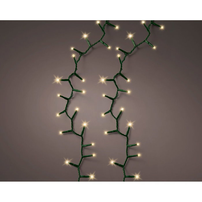 Guirnalda led compact multifunción 500 leds oro suave 220 - 240 v 50/60 hz, ip44, cable verde, programador de 8 funciones con memoria, adaptador ce, cable alimentación 5 m, distancia entre la primera bombilla y la última 11 m, largo total 16 m, para árbol 150 - 180 cm, temporizador 8 h encendido / 16 h apagado