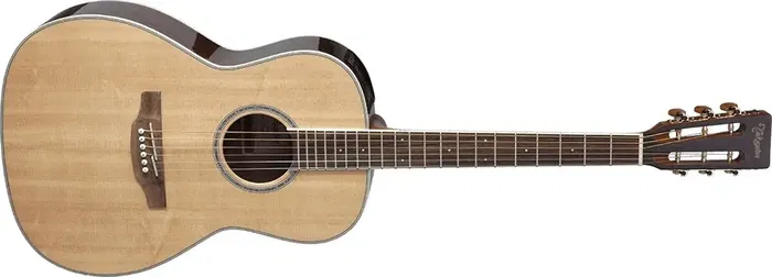 Guitarra electroacústica en formato New Yorker. Esta guitarra está fabricada con tapa de abeto, aros y fondo en nogal, diapasón de Laurel y acabado brillante natural. Monta electrónica original Takamine TP-4T.